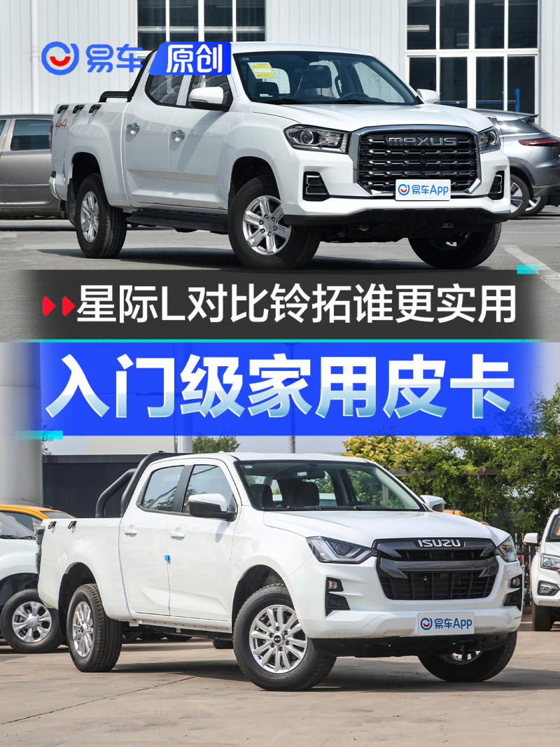 易车原创 得益于皮卡限行政策的不断解禁,如今国内消费者对皮卡车型的接受度越来越高,各大主机厂也在追逐皮卡的高端化,但不可否认,入门级皮卡依然有着最大的市场需求量。而在今年的入门级皮卡车型中,上汽大通MAXUS星际L凭借强劲的动力性能、宽敞的空间表现,出众的安全品质,再加上CBA明星球员、有着“亚洲第一控卫”之称的郭艾伦代言,让它深受诸多年轻创业群体关注,被誉为“时尚品质皮卡”担当。当然,这个细分市场从来都不缺对手,例如五十铃,在商用车领域一直都比较强势,它旗下的铃拓皮卡也是一款关注度较高的产品。那么这两台车之间,谁更务实更适合创业者呢?我们来比比看。