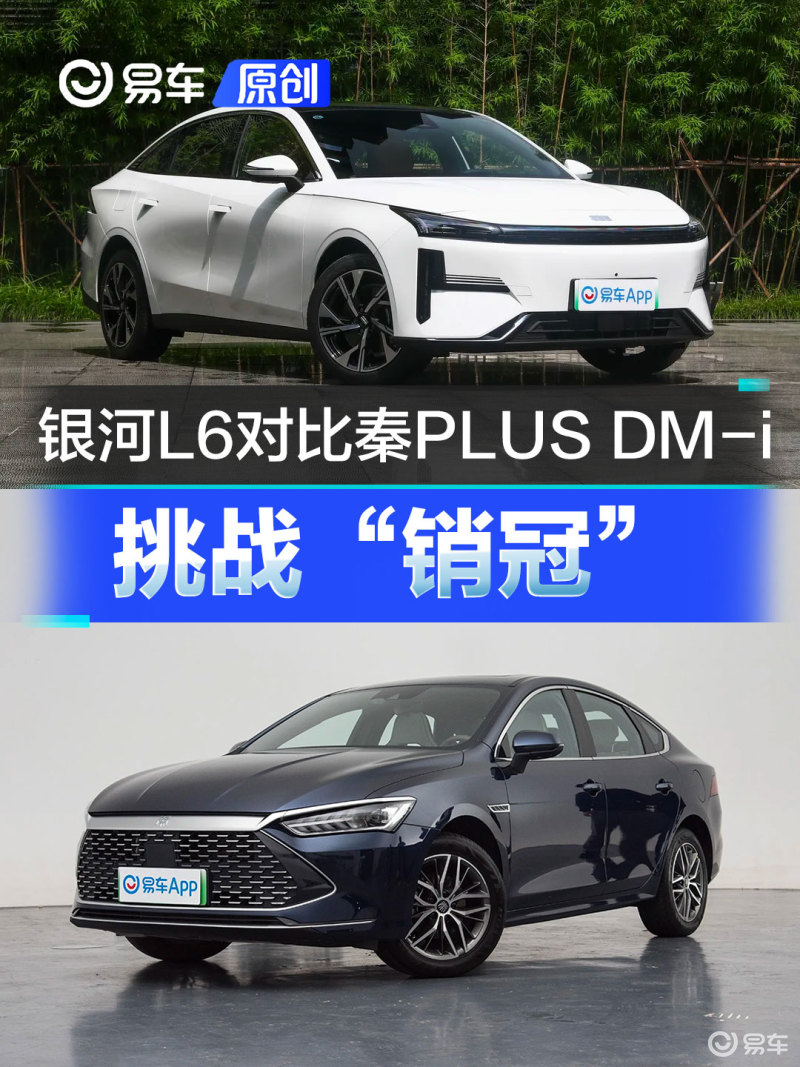 今天选择的两款车相信大家都比较熟悉了,基于e-CMA架构打造的银河L6是被吉利寄予厚望的车型,而秦PLUS DM-i则是紧凑型车市场的“销冠”。从两车的指导价区间来说,虽说银河L6的入门起售价格比秦PLUS DM-i更高,但两车顶配车型的指导价仅相差4000元,所以我就选择两车的顶配车型,即银河L6 1.5T 125km 星舰和秦PLUS DM-i 冠军版 1.5L 120km 卓越型。(为方便阅读,下文简称银河L6和秦PLUS DM-i)