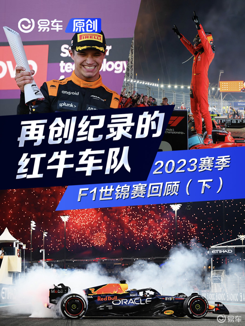 不知道各位还对我去年的F1回顾文章有没有印象,当时的标题是“创纪录的一年”。而今年红牛车队及维斯塔潘又创下了前无古人的记录,所以今天回顾文章的标题我就不费脑子了,就叫“再创纪录的一年”吧。11月26日的那个周日,维斯塔潘以Pole to Win的姿态拿下了阿布扎比站的冠军,为他个人及红牛车队的2023画上了完美的句号。而今年,红牛车队差点儿包揽全年分站冠军,嗯,就差那么一点儿。