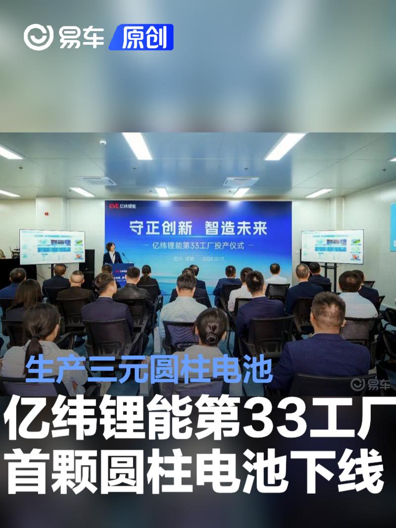 易车讯 10月17日,亿纬锂能官方宣布第33工厂首颗圆柱电池成功下线。亿纬锂能第33工厂主要生产21700和26105型三元圆柱电池,本次投产为铝壳动力电池产线,钢壳圆柱全极耳电池产线将于12月投产。